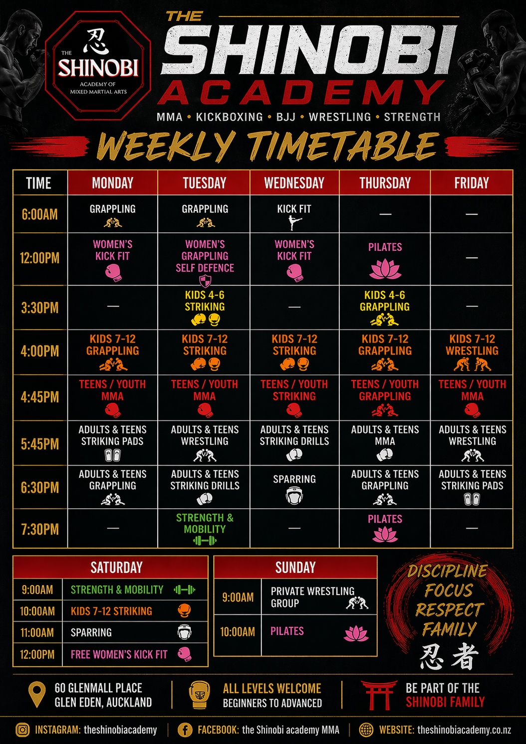My girls have been attending The Shinobi Academy for the last 3years. They have learned so much from all the awesome coaches at the gym. They have gained skills in both jiu jitsu and striking/kickboxing, they have grown in confidence, control and discipline, and they have also competed and won medals in competitions. The coaches knowledgeable, encouraging and supportive teaching has contributed greatly to the strong young women that they have grown into today! Seeing how much my girls were learning, encouraged me to join in the classes as well.